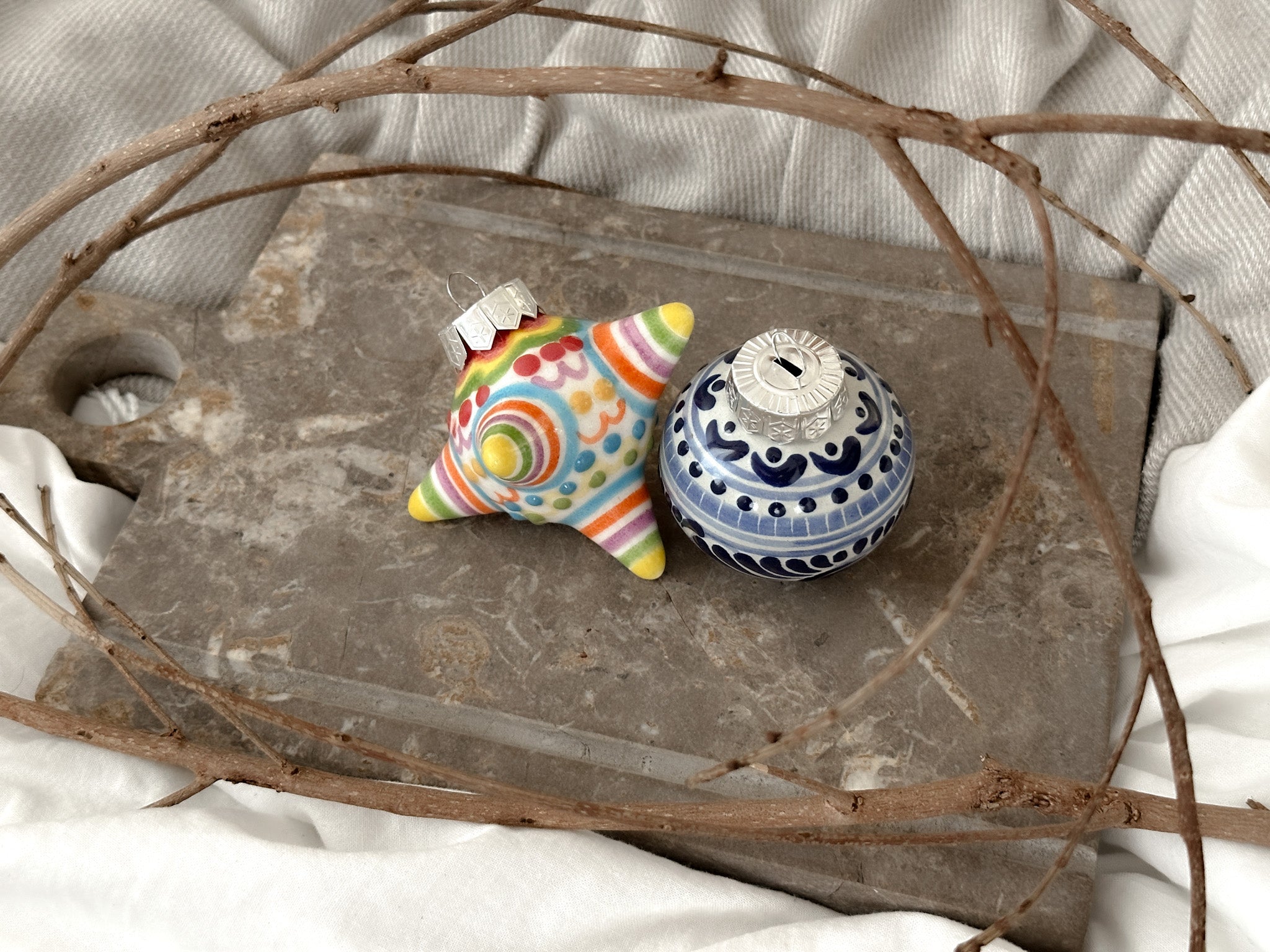 ¡Transformamos nuestras colecciones de cerámica de este año en adornos navideños! Estas esferas son elaboradas y pintadas artesanalmente a mano, por lo que hace a cada una única y diferente.